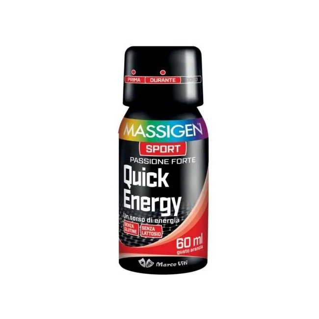 Massigen Sport Quick Energy di Marco Viti è un integratore alimentare in flaconcini da 60 ml, progettato per fornire un rapido supporto energetico in momenti di intensa attività fisica, come durante una gara o un allenamento prolungato.