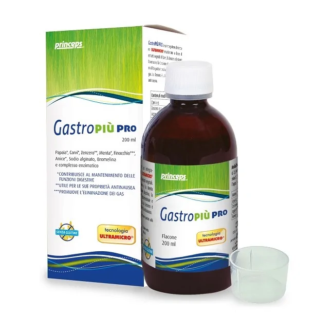 Princeps Gastropiu' Pro Sciroppo è un integratore alimentare liquido formulato per il benessere dello stomaco, spesso contenente estratti vegetali (come Malva o Aloe) e ingredienti ad azione lenitiva e protettiva sulla mucosa gastrica. Formato: 200 ml