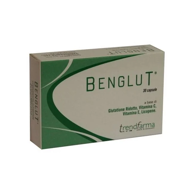 Benglut è un integratore alimentare Trendfarma indicato nei casi di ridotto apporto con la dieta o di aumentato fabbisogno dei suoi componenti. La Vitamina C contribuisce alla rigenerazione della forma ridotta della Vitamina E, al normale metabolismo energetico e alla protezione delle cellule dallo stress ossidativo. La Vitamina E contribuisce alla protezione delle cellule dallo stress ossidativo. È un complemento alimentare contenente ingredienti naturali purificati, facili da assorbire per via orale e capaci di partecipare alla neutralizzazione dei radicali liberi per via diretta o indirettamente tramite la rigenerazione di antiossidanti endogeni.