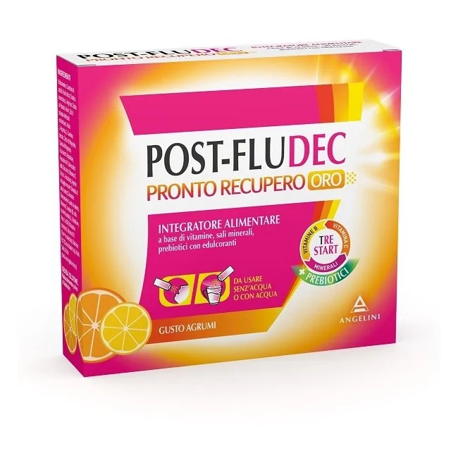 Postfludec Agrumi Pronto Recupero Oro è un integratore alimentare prodotto da Angelini, appositamente formulato per aiutarti a recuperare le energie perse durante periodi di malattia, come un'influenza o un raffreddore.