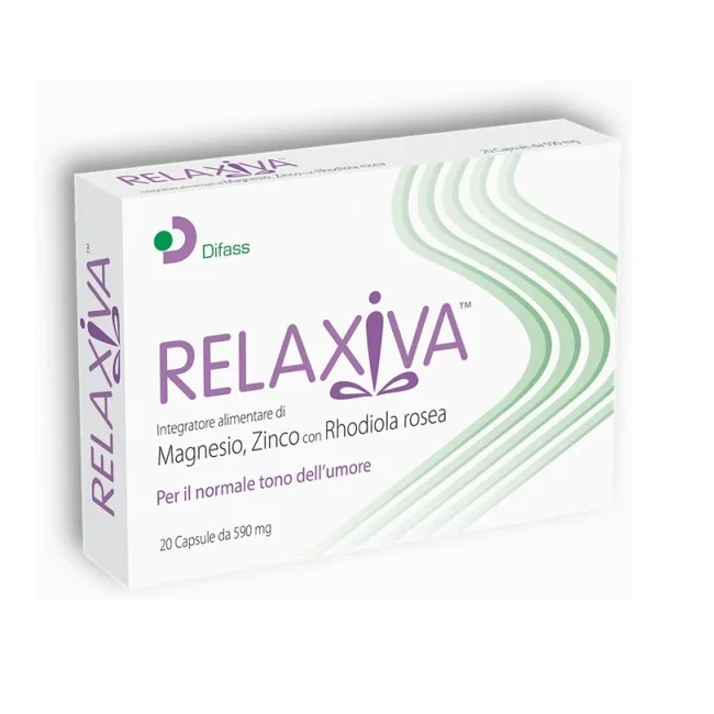 Relaxiva capsule è un integratore alimentare di Magnesio e Zinco con Rhodiola rosea, utile per favorire i buon umore ed il rilassamento. Scadenza Maggio 2023