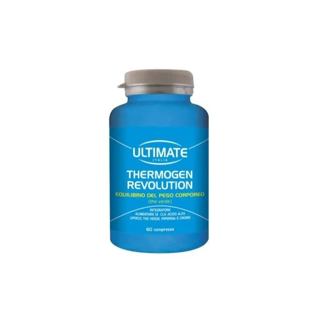 Thermogen Revolution compresse è un integratore alimentare di acido linoleico coniugato, acido lipoico ed estratto di garcinia cambogia. Contiene anche estratti di the verde per favorire l'equilibrio del peso e il drenaggio dei liquidi corporei e di pepe lungo utile come tonico-adattogeno e antiossidante. Infine contiene cromo, utile al normale metabolismo dei macronutrienti e al mantenimento dei livelli normali di glucosio nel sangue.