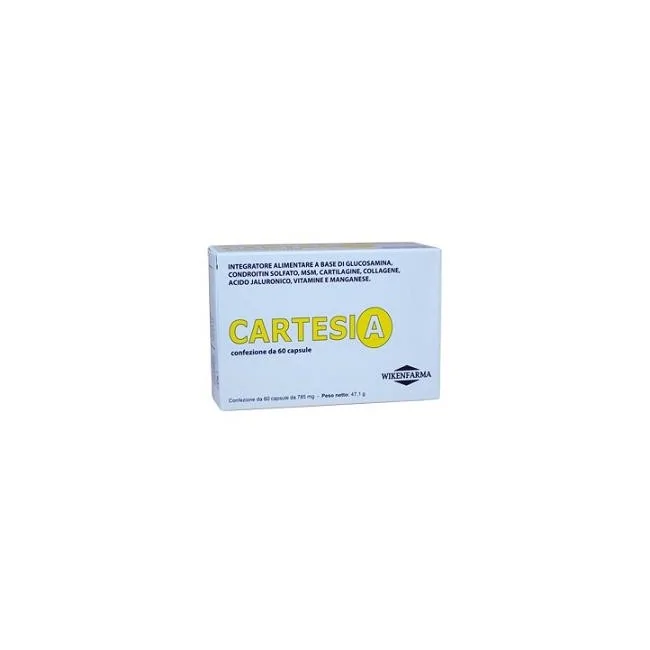 Cartesia capsule è un integratore alimentare Wikenfarma contenente glucosamina solfato, condroitin solfato, metil-sulfonil-metano, cartilagine di squalo, collagene nativo di tipo II, acido jaluronico, manganese e vitamine.