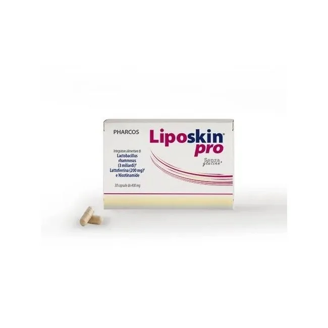 Liposkin Pro Pharcos capsule è un integratore alimentare a base di probiotici, lattoferrina e nicotinamide, utile per favorire il benessere della pelle. Formato: 30 capsule
