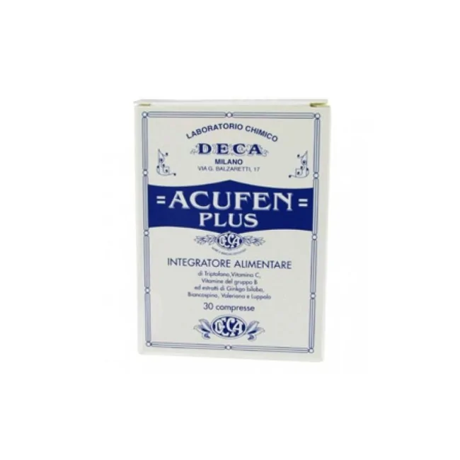 Acufen Plus è un integratore con Biancospino, Valeriana, Gruppi Vitaminici, Luppolo e Triptofano.