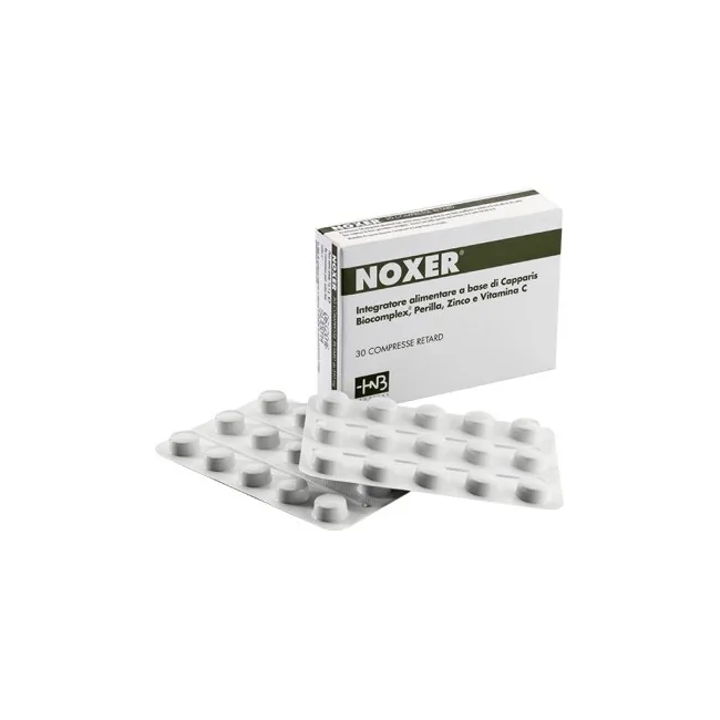 Integratore alimentare a base di nutrienti naturali: estratto di Capparis Spinosa, utile per la funzionalità delle prime vie respiratorie, ed estratto di Perilla frutescens utile per le naturali difese dell'organismo. La formulazione è arricchita con Zinco e Vitamina C, che contribuiscono al mantenimento della normale funzione del sistema immunitario ed alla protezione dallo stress ossidativo. Noxer compresse fornisce un’efficace difesa ai soggetti più sensibili e maggiormente esposti ai fattori pro allergici. Senza glutine. Senza lattosio.