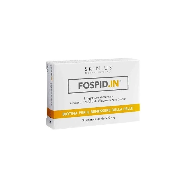 Fospid-in è un integratore alimentare a base di Fosfolipidi, Glucosamina e Biotina, utile per il benessere della pelle e degli annessi cutanei