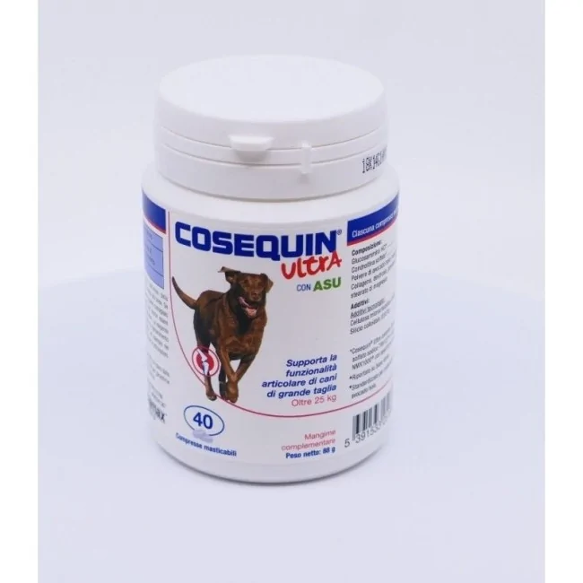 Cosequin ultra large dog 40 compresse è un mangime complementare con condroitina e glucosammina utile per ritardare la degenerazione articolare