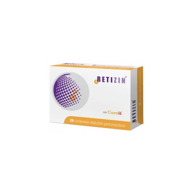 Retizin è un integratore alimentare di curcuma (Cureit), omotaurina, luteina (da FloraGLO), vitamine e minerali, utile per proteggere la retina da patologie cronico degenerative
