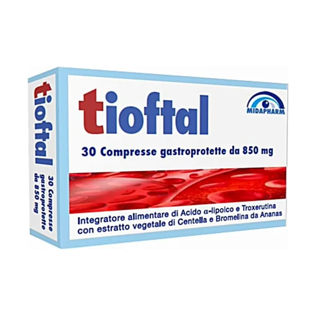Tioftal 30 Compresse Gastroprotette è un integratore alimentare dalle proprietà antinfiammatorie anti-age e regolatrici del glucosio dell’acido α-lipoico e la positiva azione sul microcircolo della centella asiatica. Formato 30 compresse.