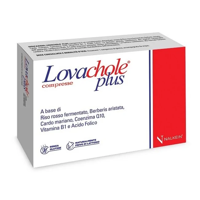 Lovachole plus compresse è un complesso alimentare a base di riso rosso fermentato, Berberis aristata, cardo mariano, coenzima Q10, vitamina B1 e acido folico.