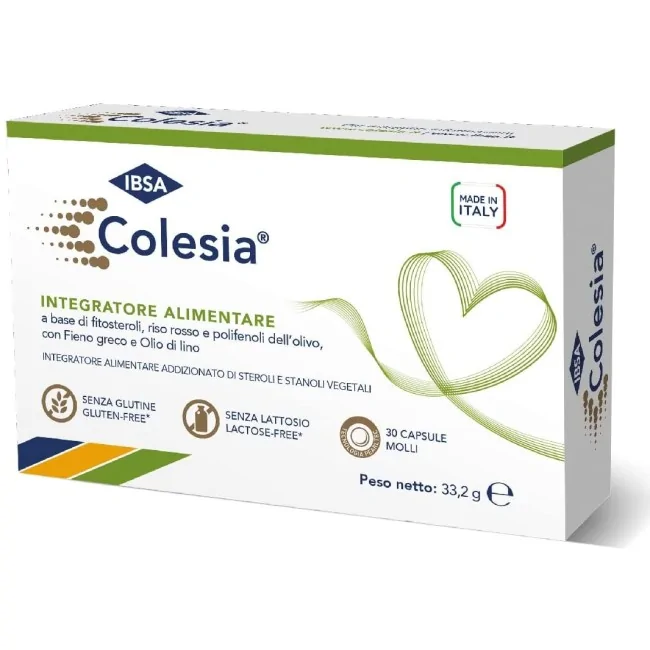 Colesia di Ibsa è un integratore alimentare a base di riso rosso fermentato, fitosteroli, polifenoli, utile per il controllo del colesterolo.