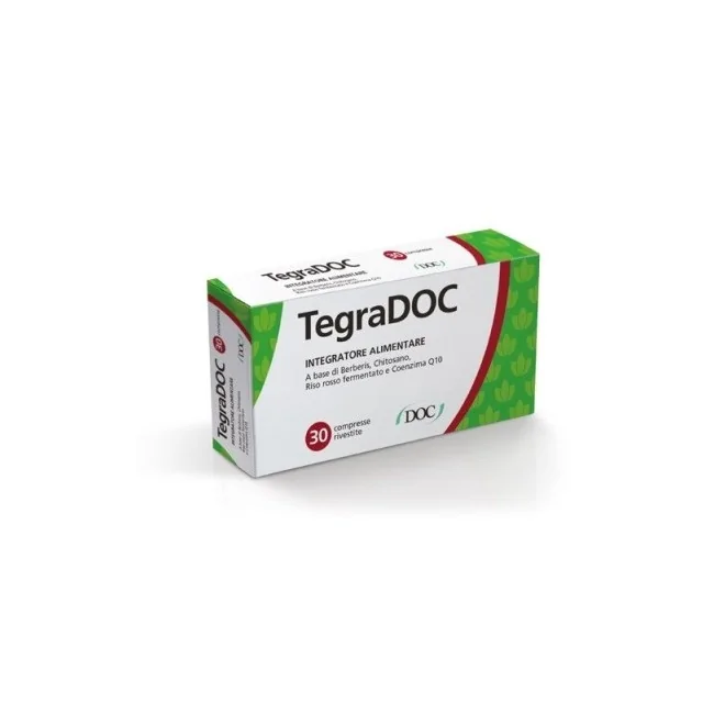 Tegradoc è un integratore alimentare a base di Chitosano, Riso rosso fermentato, Coenzima Q10 e Berberina utile per favorire la regolare funzionalità dell'apparato cardiovascolare.