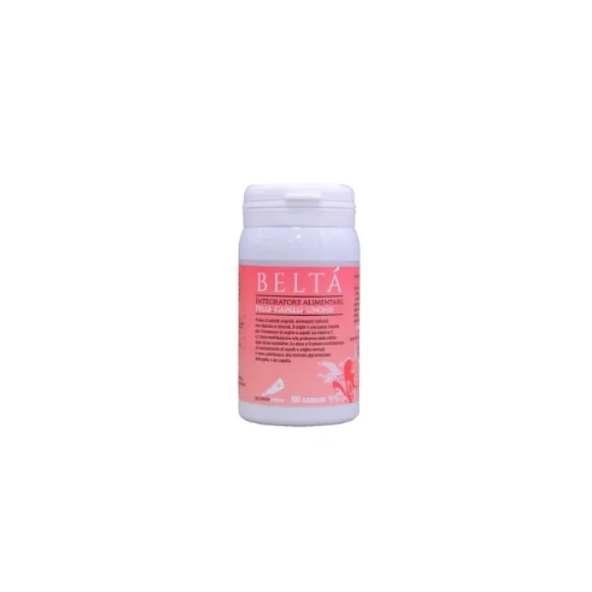 Beltà è un integratore con Miglio, L-Cistina e minerali (Zinco, Selenio) per il benessere di capelli e unghie. Fornisce supporto nutrizionale per rafforzare la struttura di capelli fragili e unghie deboli, proteggendo le cellule dallo stress ossidativo. Formato: 60 capsule