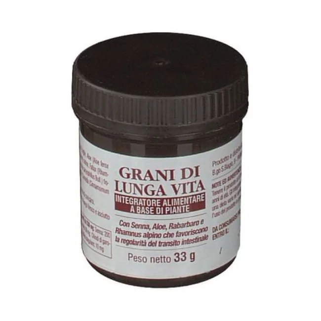 I Grani di Lunga Vita di Bioerbe sono un integratore alimentare a base di erbe, tradizionalmente utilizzato per favorire il benessere intestinale e il regolare transito. La loro formulazione, a base di piante come la senna, la frangula e l'aloe, agisce stimolando la peristalsi intestinale e favorendo l'eliminazione delle scorie. Formato: 33 grammi