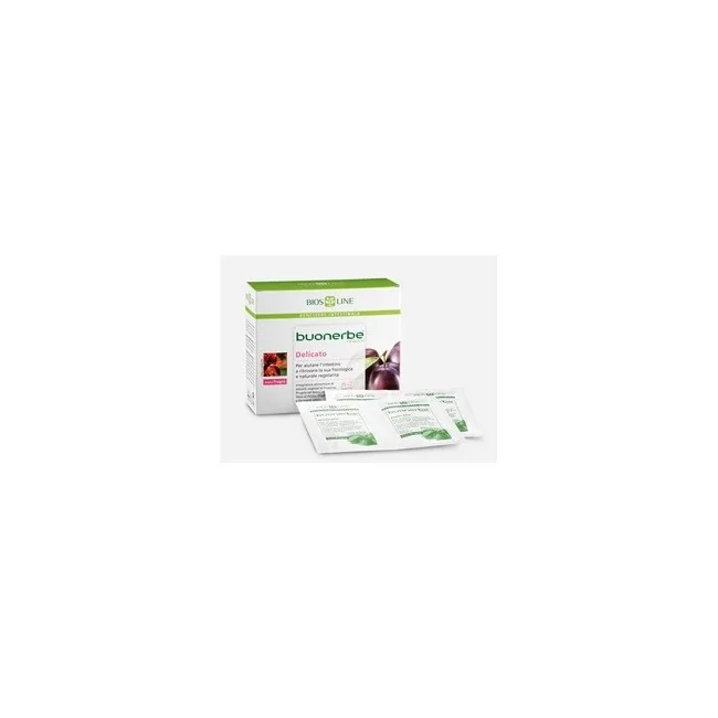Buonerbe Regola Delicato è un integratore alimentare utile in caso di irregolarità intestinale e di stipsi prolungata, efficace ma delicato, assolutamente non irritante per le pareti intestinali. Utile anche in occasione di viaggi con cambio di clima e abitudini e, in generale, in presenza di un’alimentazione scorretta povera di fibre. Adatto anche ai bambini e alle donne in gravidanz. Apporta fibra di psillio e pisello, manna da frassino, prugna e ibisco noti per la loro funzione in grado di favorire il transito intestinale. Contiene inoltre inulina utile per favorire l’equilibrio della flora batterica intestinale, Lactobacillus acidophilus tindalizzato ed estratto di finocchio che contribuisce all’eliminazione dei gas intestinali.