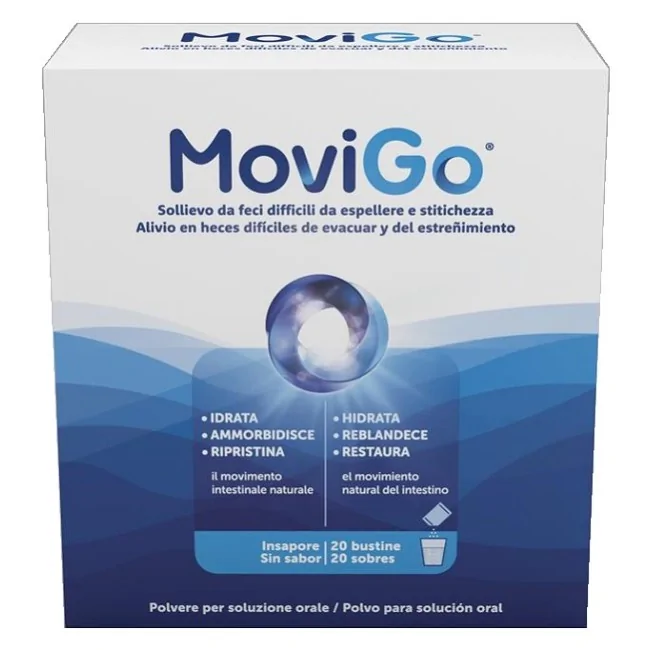MoviGo aiuta a trattare le feci difficili da espellere e allevia la stitichezza favorendo la motilità intestinale.