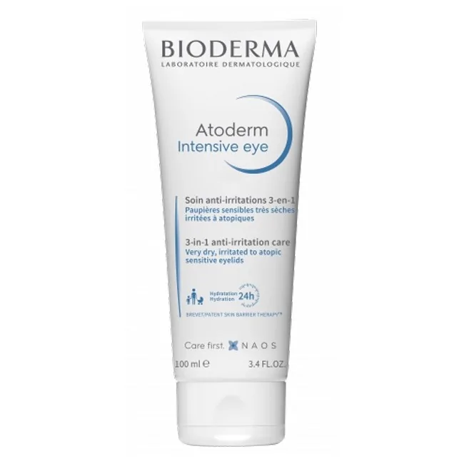 Atoderm intensive eye è un trattamento che calma immediatamente e a lungo la sensazione di pizzicore, riduce la secchezza della pelle e il rossore, rimuove il make-up, le impurità e le particelle inquinanti.
