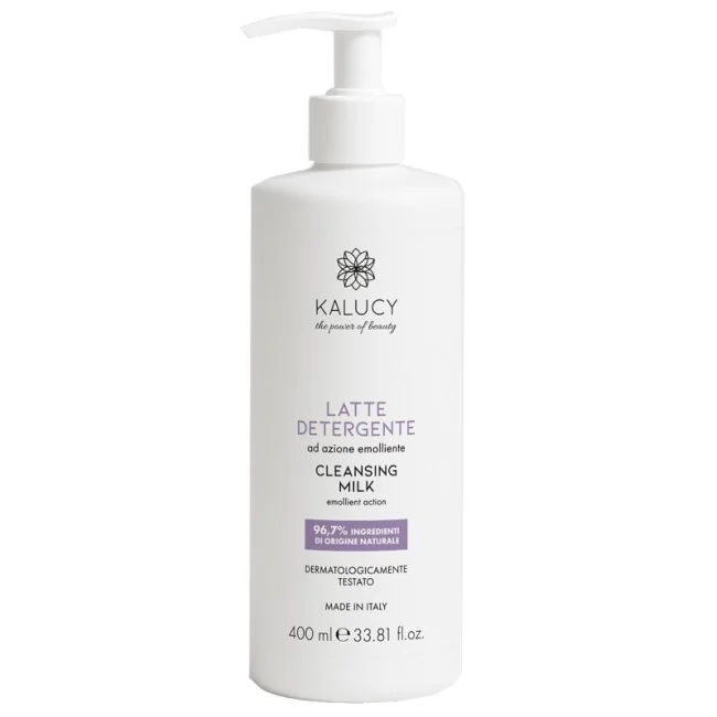 Farvima Kalucy Latte Detergente è un trattamento quotidiano delicato formulato per rimuovere impurità e trucco rispettando l'equilibrio idrolipidico della pelle. Formato: 400 ml