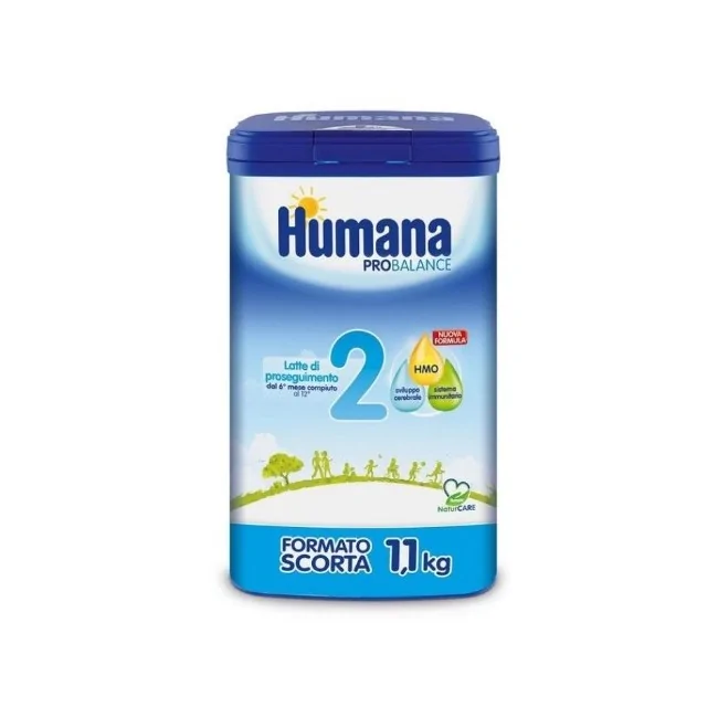 Humana Probalance 2 Latte è un latte di proseguimento in polvere per lattanti dal sesto mese compiuto in poi, formulato con GOS, nucleotidi e un equilibrato apporto di nutrienti. Ideale per supportare la crescita e lo sviluppo in abbinamento all'alimentazione complementare. Formato: 1100 grammi