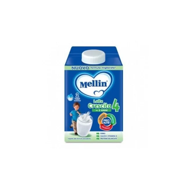 Mellin Latte Crescita 4 è indicato per i bambini dai 2 anni in su, come parte di una dieta varia ed equilibrata. Latte di crescita arricchito con ferro, calcio e vitamina D. Formato: Barattolo da 700g