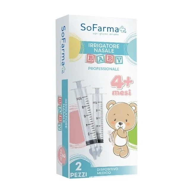 Irrigatore Nasale Baby 2 Pezzi Sofarmapiu' è un dispositivo medico, utile per l'igiene nasale ed adatto ai bambini dai 4 mesi in poi. Formato 2 pezzi