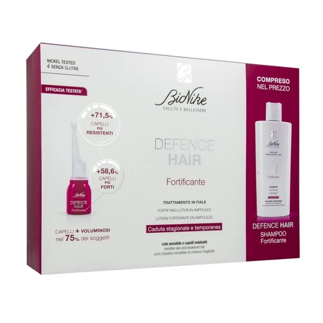 Bionike Defence Hair Ridensificante 21 Fiale 6 Ml + Shampoo è un KIT trattamento anticaduta utile per fortificare i capelli: Formato: 21 Fiale 6 Ml + Shampoo 200 Ml