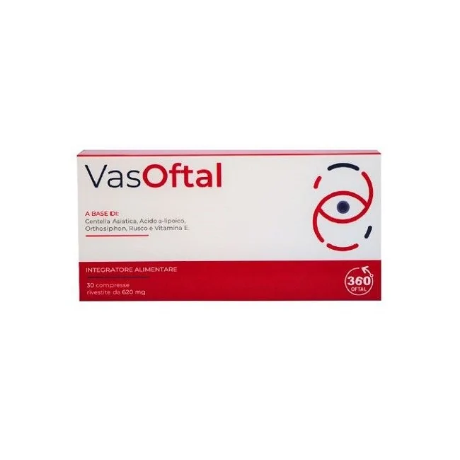 Vasoftal compresse è un integratore alimentare a base di centella asiatica, acido alfa-lipoico, orthosiphon, rusco e vitamina E. VasOftal è utile in caso di carenza e/o aumentato fabbisogno dei nutrienti in esso contenuti.
