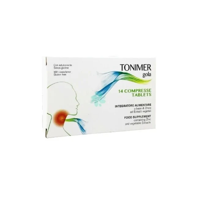 Tonimer gola compresse è un integratore alimentare con zinco ed estratti vegetali utile per il benessere della gola. Formato: 14 compresse