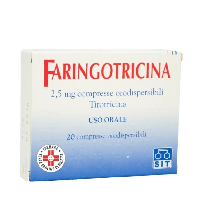 Faringotricina è un farmaco senza obbligo di prescrizione a base di tirotricina indicato nella terapia topica delle stomatiti di origine batterica ed in caso di mal di gola. Formato: 20 compresse orodispersibili