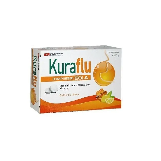 Kuraflu Gola è un rimedio in compresse che attenua le irritazioni e gli arrossamenti del cavo orale contribuendo a calmare la tosse correlata.
