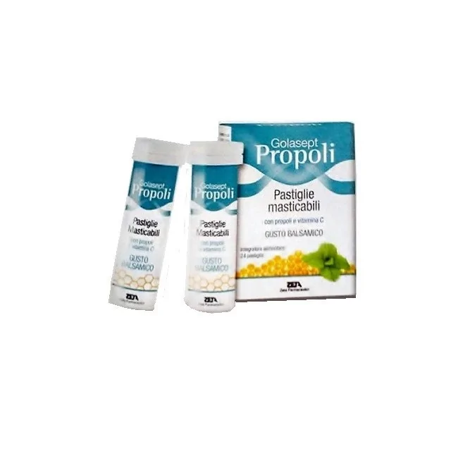 Golasept Propoli sono pastiglie masticabili con propoli utili ad alleviare mal di gola e bruciori al cavo orale. Formato: 24 compresse