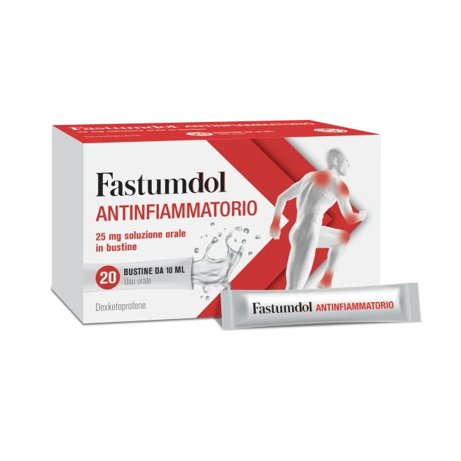 Menarini Fastumdol Antinfiammatorio è un farmaco da banco a base di desketoprofene, indicato per il trattamento sintomatico a breve termine di dolori di varia natura (mal di testa, mal di denti, dolori muscolari e mestruali) e della febbre. Formato: 20 bustine
