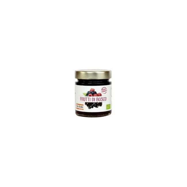 frutti di bosco bio (mirtilli bio, more bio, lamponi bio, ribes bio) in proporzione variabile 70%, succo di mela concentrato bio, succo concentrato d'uva bio, gelificante: pectina, correttore di acidità: acido citrico.