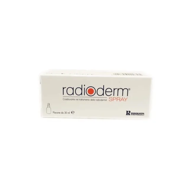 Radioderm Spray Protettivo per la Pelle è un dispositivo medico ad azione prevalentemente protettiva della cute, realizzato in conformità alla Direttiva 93/42/CEE MDD. Formato: 30 ml