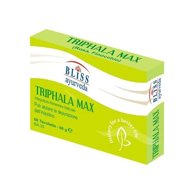 Bliss Triphala Max è un integratore alimentare ayurvedico a base di estratti vegetali utile per la depurazione dell'intestino. In pacchetto convenienza