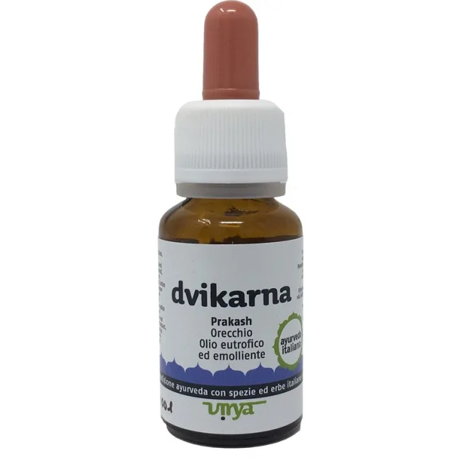 Dvikarna Virya è un olio ayurvedico specifico per la cura dell'orecchio che aiuta a rimuovere delicatamente l'eccesso di cerume e a lenire fastidi, secchezza o ronzii. Grazie alla sua azione emolliente e protettiva, mantiene l'elasticità della membrana timpanica e protegge il condotto uditivo dagli agenti esterni. Formato: 15 ml