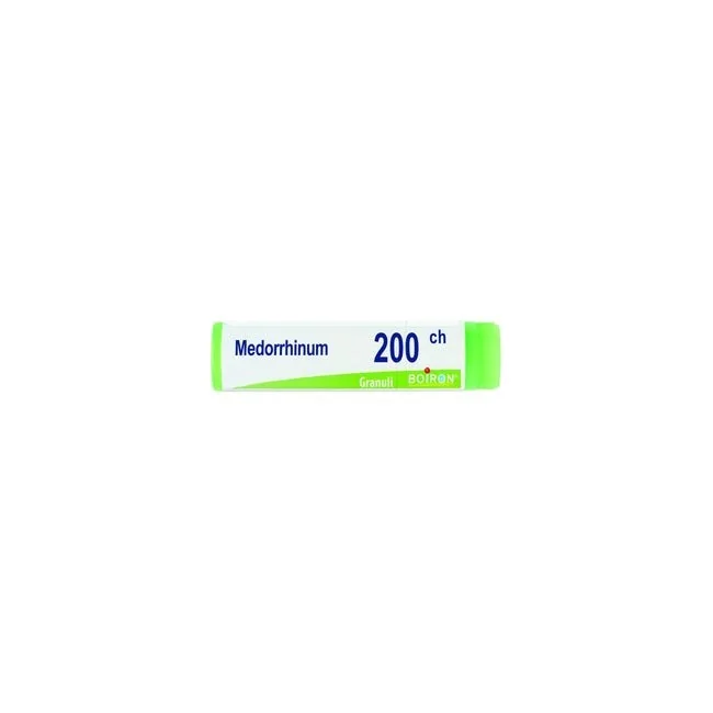 Boiron Medorrhinum 200ch Globuli medicinale omeopatico è un rimedio omeopatico preparato attraverso un processo di diluizione e dinamizzazione, che consiste nel diluire ripetutamente una sostanza di partenza (vegetale, animale o minerale) e nel sottoporla a scuotimenti energici. Questo processo, secondo i principi dell'omeopatia, potenzia l'azione del rimedio.