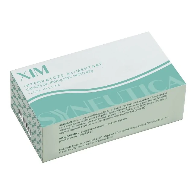 Syneutica Xim è l'integratore nutraceutico che combina estratti vegetali e funghi officinali per sostenere attivamente il sistema immunitario e proteggere l'organismo. Formato: 60 capsule