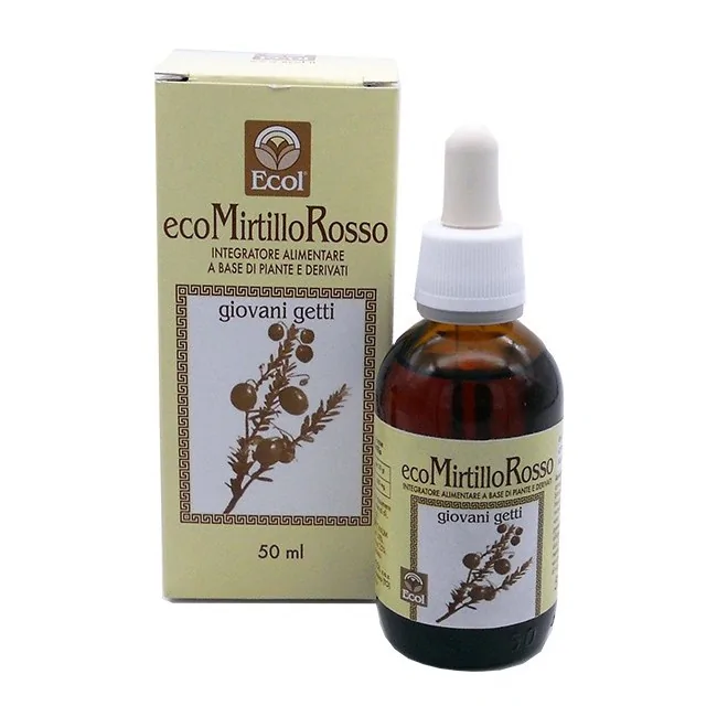 Ecol Ecomirtillo Rosso Giovani Getti Gocce 50 Ml è un integratore alimentare a base di estratto di mirtillo rosso, ricco di antocianine. Le antocianine sono flavonoidi con proprietà antiossidanti e antinfiammatorie.