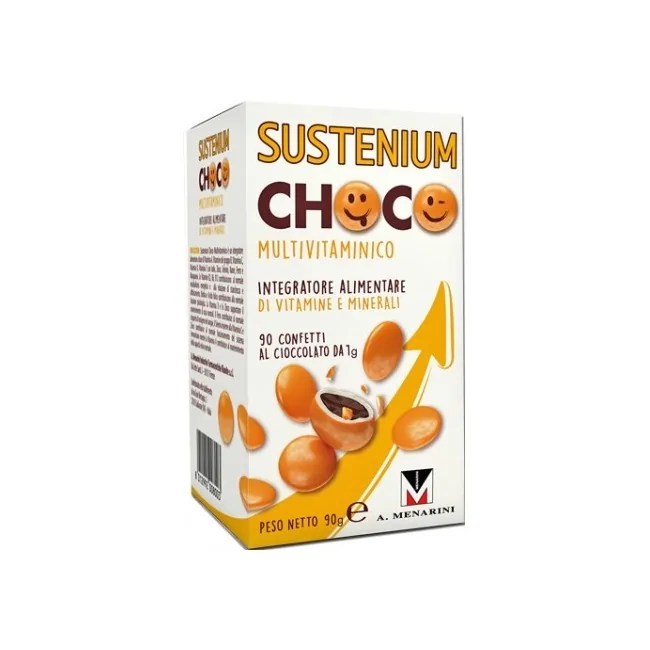 Sustenium Choco Multivitaminico è un integratore alimentare a base di Vitamina A, Vitamine del gruppo B, Vitamina C, Vitamina D, Vitamina E con Iodio, Zinco, Selenio, Rame, Ferro e Manganese.