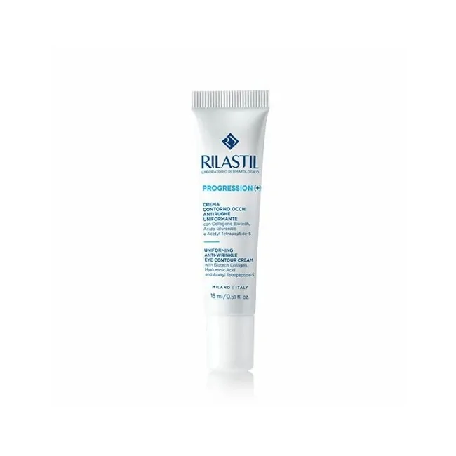 Rilastil Progression Contorno Occhi è una crema specifica per la zona perioculare che contrasta i segni dell'invecchiamento come rughe, borse e occhiaie, spesso con un'azione uniformante grazie a pigmenti illuminanti. Formato: 15 ml