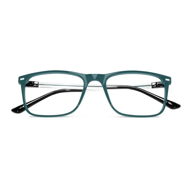 La montatura, caratterizzata dall'originale accostamento cromatico petrolio e nero, offre un look moderno e professionale, adattandosi con classe a ogni lineamento del viso.