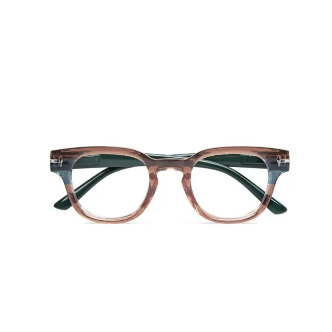 Gli occhiali da lettura Twins Gold Funk nella variante Marrone-Verde sono l'accessorio perfetto per chi cerca un design distintivo e di tendenza. La montatura gioca su un contrasto cromatico sofisticato: un frontale marrone caldo abbinato ad aste verde brillante, per un look "urban" che non passa inosservato. Con una gradazione di +1,00 diottria, questo modello della linea Gold è ideale per chi affronta i primi segni di presbiopia, offrendo un supporto visivo nitido e riposante per la lettura quotidiana e l'uso di dispositivi digitali.