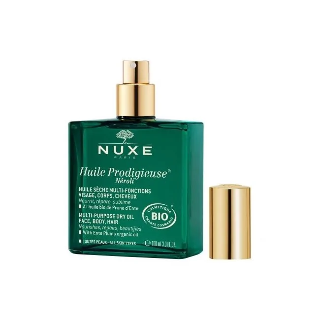 Nuxe Huile Prodigieuse Olio Idratante Néroli è l'iconico olio idratante Nuxe, in un formulazione certificata BIO alle note rilassanti di Néroli.