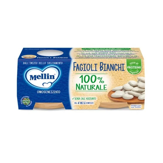 L'omogeneizzato di fagioli bianchi Mellin è un prodotto pensato appositamente per introdurre i bambini a nuovi sapori e consistenze, partendo da un alimento sano e nutriente come i fagioli.