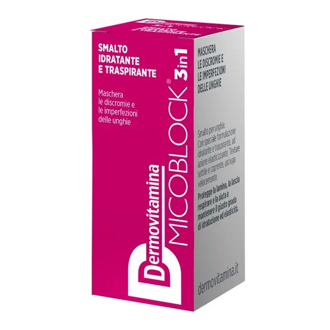 Dermovitamina micoblock smalto fuxia è un cosmetico per le unghie che maschera le imperfezioni e le dscromie