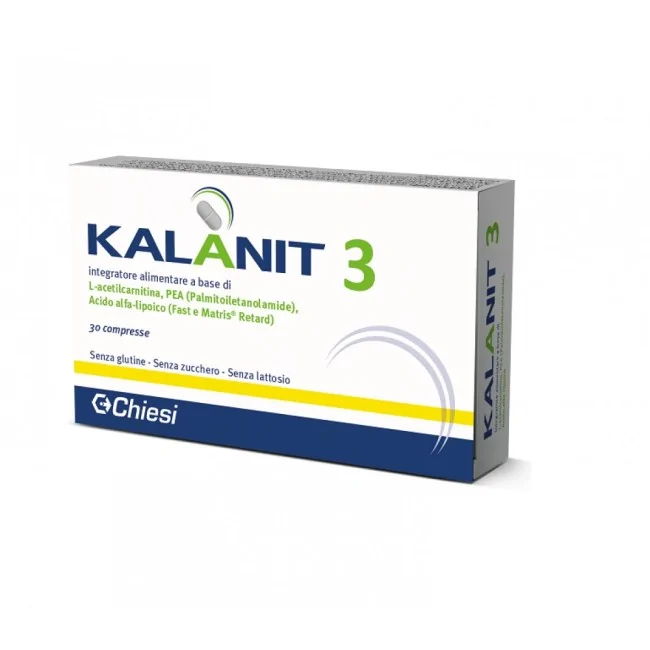 Kalanit 3 è un integratore alimentare Chiesi a base di acetilcarnitina, PEA e boswellia, utile per il trofismo del sistema nervoso. Formato: 30 compresse