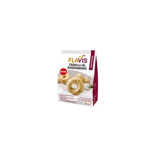 I Taralli al Rosmarino Flavis sono un'alternativa senza glutine e ipoproteica ai tradizionali taralli pugliesi. Croccanti e gustosi, con un intenso aroma di rosmarino, sono perfetti per un aperitivo sfizioso o come snack salato, ideali per chi segue una dieta specifica. Formato: 80 grammi