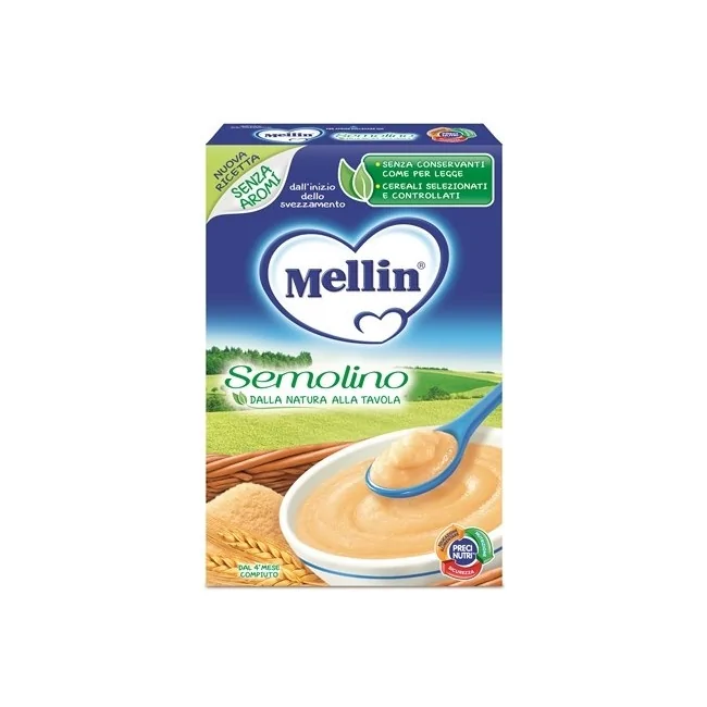 Mellin Semolino A Base Di Cereali indicato per la prima infanzia a base di cereali. Senza aromi. Senza conservanti.